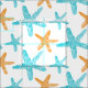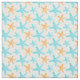 This unique watercolor starfish fabric features a repeating pattern in teal blue and orange. A perfect beach design for your nautical projects.