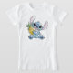 This watercolor graphic features Disney's Stitch holding a pineapple.
