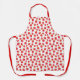 Great color and even though I ordered the kid size, it covers well enough to use during the holidays. I am not a big woman and prefer a shorter apron. I stand 5"6" and the length of the garment goes to mid-thigh. The tie straps fit well at my waist and even though there is no neck strap adjustment, the opening is plenty big enough. I am happy with the size and fit. I am sharing my apron with my 10 year old grandson, too! The color is vibrant and looks good, as shown on the website. The stitching looks strong and reinforced. Photographed is front side and back side of the apron, reinforced straps and coloring. My phone camera may not be the best at showing the details.