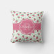 Watercolor Strawberry Pattern with Monogram Throw Pillow