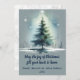 Watercolor Style Tree Against Medium Blue Backdrop Holiday Card