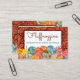 Colorful balls of yarn with groovy retro burnt orange floral background on this business card for a knitter, knitting or crochet projects, homespun yarns and other yarn crafts.