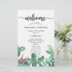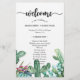 Beautiful Succulent Cactus Floral Wedding program paper sheet design featuring a watercolor succulent and cactus floral print and a big "welcome" in an elegant script, a wedding program template for you to personalize or customize further. If you need help or matching items, please contact me.