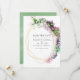 Trendy succulents wedding invitation with gold geometric frame and sage green watercolor wash reverse. Ideal for any given theme or garden wedding.
