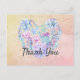 Beautiful watercolor illustration features heart shaped wreath made from a variety of succulents and cacti in blues, purples, pinks and greens, on abstract background. Customizable "Thank You" text. Design is suitable for weddings and other important events.