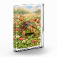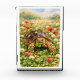 Watercolor drawing with a Sulcata tortoise walking through the fields of red and white clover, carrying a lucky four leaf clover. Perfect birthday or just because gift for turtle lovers.