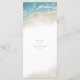 This elegant summer coastal destination wedding reception menu card features a hand painted watercolor beach scene in the corner with ocean waves lapping on the sea shore.