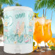 Igloo cooler featuring a watercolor tropical summer surf party-themed design. The design features a pastel watercolor aesthetic with a light blue background and beach-related illustrations. Phrases such as "Enjoy Your Summer" in stylish, handwritten-style lettering, two surfboards, one with the word "Aloha" written on it, colorful wooden signposts pointing in different directions, with words like "Beach," "Surf," "Bar," and "Sea" written on them. A tropical drink in a coconut shell with a straw and garnished with a flower and citrus slice. A pink-and-orange gradient acoustic guitar. Palm trees, tropical leaves, and flowers adding to the beachy vibe. The overall aesthetic is bright, fun, and ideal for summer parties or beach outings.
