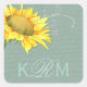 Watercolor Sunflower Grayed Jade Wedding Square Sticker
