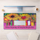 WATERCOLOR SUNFLOWER IN FUNKY STRIPE DESIGN DESK MAT