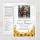 A beautiful and elegant two sided funeral program adorned with pretty yellow sunflowers.