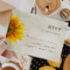 Watercolor sunflower RSVP card for rustic / country / barn / floral fall wedding.