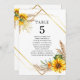 Watercolor Sunflower Rustic Wedding Table Number