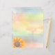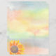 This stationery paper is decorated with a colorful watercolor on both sides and a yellow sunflower.