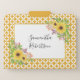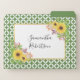 Watercolor sunflowers, gold frame and and geometric pattern file folder. A set of three files showcasing a beautiful bouquet of sunflowers on the corners of a gold frame and a geometric pattern in green, yellow and purple.