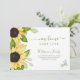 Elegant chic rustic watercolor flowers new home same love moving announcement card featuring a beautiful yellow sunflowers summer botanical bouquet with emerald and sage greenery foliage and a trendy green handwriting calligraphy script.
