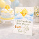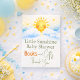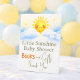 Add a thoughtful touch to your celebration with this sunshine baby shower books and gifts design featuring a smiling sun, soft watercolor clouds, and delicate stars. The warm yellow and sky blue palette creates a cheerful and welcoming atmosphere, inviting guests to bring books and thoughtful presents. Perfect for a little sunshine baby shower theme and coordinating beautifully with matching party decorations.