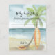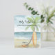 Baby on Board! Baby shower invitation - perfect for a summer baby shower. Beach theme. Watercolor design has a ocean and beach scene with surfboard, palm tree and summer hat.