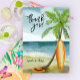 Baby on Board! Baby shower invitation - perfect for a summer baby shower. Beach theme. Watercolor design has a ocean and beach scene with surfboard, palm tree and summer hat.