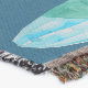 A quality printed throw has its advantages. This is a much finer weave throw than its loopier cousins, and though lighter, it is worth the investment for custom room accessorizing. The back is much prettier than the typical brown, and the fringe on the long sides very vivid, the selvage nicely done. Before photographing, I washed the throw in cold water, delicate, with a thicker woven throw the same size. On tumble dry low, this throw was dry in half the time as the other. This is a very practical quality if you use throws for furniture covers or to wrap up in frequently. The sleekness of the fabric makes it a great layer for accenting or protecting without the feeling of sitting on too much stuff. Perfect for napping or when you feel a light chill coming on. The color printing is beautiful and on this fabric, matched the design and color of my Photoshop image. This is an advantage for blending room fabrics and colors. The fringe on the short sides prints the colors from the design image and therefore varies from the side fringe. I streaked a white fractal line through the plaid pattern to give the illusion of weaving. This printed as crisp as an illusory thread, and put some white in the short side fringe, showing another advantage of print vs loomed- for artistic purposes, line lines, detail, and color integrity can be planned and preserved. My loomed throws have color limitations and more of a needlepoint texture. Print throws reproduce an exact image. The throw felt a little stiff straight out of the package, but this went away in the first delicate wash. Of course I searched the wash water for ink or bleeding and there was none.