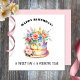 Birthday card featuring a watercolor painting of a sweet and festive birthday cake