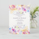 This colorful floral invitation features a wide spectrum of colors and a variety of blooms in a top and bottom matching border. Suitable for any happy celebration.