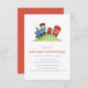 Watercolor Train Red Blue Pastel Birthday Invitation