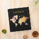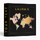Clean world map in gold on black surface for presenting all data of events in a binder