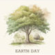 Watercolor tree sticker for Earth day.