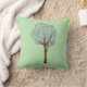 A light green throw pillow for nature lovers with a watercolor illustration of a tree.