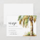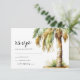 Beach destination wedding rsvp cards featuring a simple white background, tropical watercolor palm tree, and rsvp template that is easy to customize.