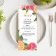 Add a zesty and refreshing touch to your celebration with this Watercolor Tropical Citrus Menu Card! Bursting with hand-painted lemons, oranges, and vibrant greenery, this elegant menu design brings a splash of sunshine to your table decor.