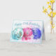This 35th birthday greeting card features three tropical cocktail watercolor drink umbrellas in teal, pink, and purple on the cover. There are greetings inside on the top and bottom. Personalize the template text fields with your information or remove text for a blank inside.