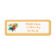 This return address label features watercolor hibiscus, bird of paradise and other tropical flowers on a white center, with a pale orange colored background. The text on this label can be customized and used as either a return address label or can be used as a gift tag!