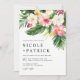 Watercolor Tropical Flowers QR Code Wedding Invitation