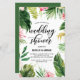 Invite guests to your event with this customizable wedding shower invitation. It features watercolor hibiscus, palm leaves, banana leaves and other tropical accents. This wedding shower invitation is perfect for summer and tropical weddings.