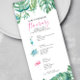 Welcome your bridal party guest with this coastal style tropical bachelorette weekend itinerary or beach wedding day events. This tea length watercolor illustrated wedding program features my original pink flamingo, cocktail, sea turtle icons and monstera palm leaves artwork in shades of green and turquoise blue. Your summer details are set in an elegant pink hand lettered script and sans serif typography. The card reverses to a solid complimentary pink color. Perfect for coastal and tropical greenery weddings, bachelorette and bridal party weekend get aways. To see more beach wedding inspiration visit my store at www.zazzle.com/dotellabelle
