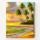 Watercolor Red Orange Palm Trees Beach Tropical Sunset Painting.