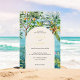 Dreamy watercolor tropical wedding invitation featuring palm trees, Hawaiian elements, and serene blue tones. Perfect for boho beach weddings and summer celebrations.