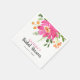 Bright, colorful and modern bridal shower napkins featuring a large bold spray bouquet of watercolor flowers in tropical pink, orange and green. The bride's name is in fuchsia pink and "bridal shower" is in modern brush lettered style black font. Matching items also available