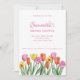 Plain white envelopes are included with paper invitations and will come to fit the invitation size you select. If you don’t need the envelopes, you may choose to not receive them by selecting the dropdown below "Envelopes" and choosing "None." If you’d like to have a design on your envelopes, you can browse all of these available envelopes to find the design that complements your Watercolor Tulips Bridal Shower Invitation.