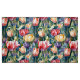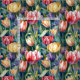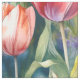 Cut flowers only last a few days, but a beautiful watercolor painting of colorful tulips will last much longer. This field of multi-color tulips in full bloom has a dark background, and vivid flowers.