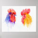Watercolor Two Roosters Portrait Poster