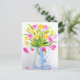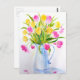 Watercolor vase of tulips print by the Watercolor artist Cheng Jing, yellow tulips, pink tulips, vase of flowers.