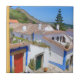 Watercolor village ceramic tile