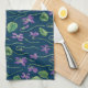 Watercolor violets on blue kitchen towel