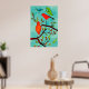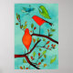 Watercolor Wall Art Birds, a watercolor design with a red couple of birdcows finish, with green and blue background, a poster to decorate those special spaces of your home, with cheerful colors to highlight that wall of your home.
