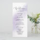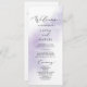 This watercolor wash purple wedding program is perfect for a modern wedding. The simple and classic design features a splash of pastel lavender purple water color with minimalist elegant style. Include the name of the bride and groom, the wedding date and location, thank you message, order of service, wedding party and an optional "in loving memory" memorial.