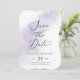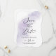This watercolor wash purple wedding save the date announcement card is perfect for a modern wedding. The simple and classic design features a splash of pastel lavender purple water color with minimalist elegant style.