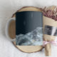 This save the date coffee mug features watercolor brush strokes in deep navy blue with gold accents imitating waves on the beach which makes it a perfect choice for a summer or beach wedding. It is minimalistic and elegant in layout and font choices, and very easy to customize. Personalize with your own photo or delete the photo and leave only script on the front. Other items from this collection complement it very well so do check out the whole collection in my store.